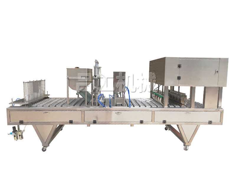 盒裝灌裝包裝機(jī)適用于各種盒裝產(chǎn)品的包裝,能自動落盒、充填水、充填物料、紫外線消菌、光電定位、兩次氣動熱封、自動剪切及整列出盒等功能。整機(jī)可采用編程邏輯控制器、氣動控制元件、智能數(shù)顯溫度控制系統(tǒng),具有封口強(qiáng)度高,密封性好,故障率低等特點(diǎn),是企業(yè)自動化生產(chǎn)的良好產(chǎn)品,按照客戶要求可以定做特殊規(guī)格的機(jī)器。