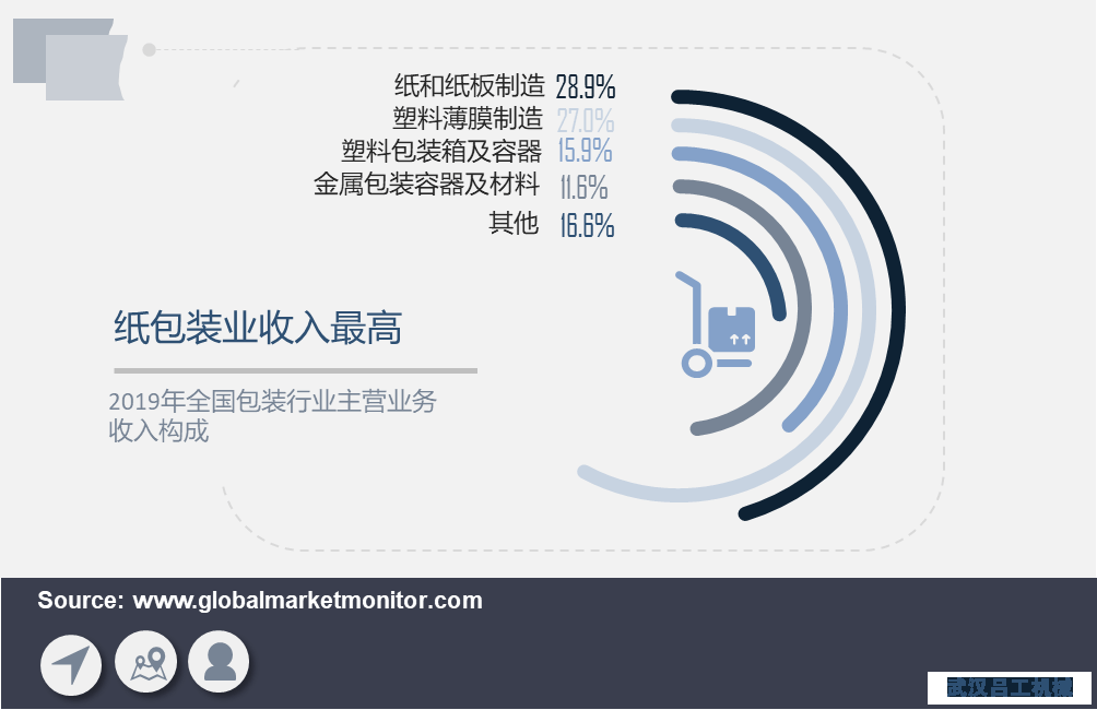 2019年,國內(nèi)包裝設(shè)備制造行業(yè)的主營業(yè)務(wù)收入達(dá)到354.6億元,其中食品、飲料、醫(yī)藥是應(yīng)用比例最高的三個市場,占整個包裝的65%。由于食品,飲料和藥品在宏觀經(jīng)濟(jì)運(yùn)作中的敏感性較低,因此包裝行業(yè)的下游需求在總體上是長期向好的,尤其是快消品領(lǐng)域和快遞領(lǐng)域業(yè)務(wù)擴(kuò)張速度快。