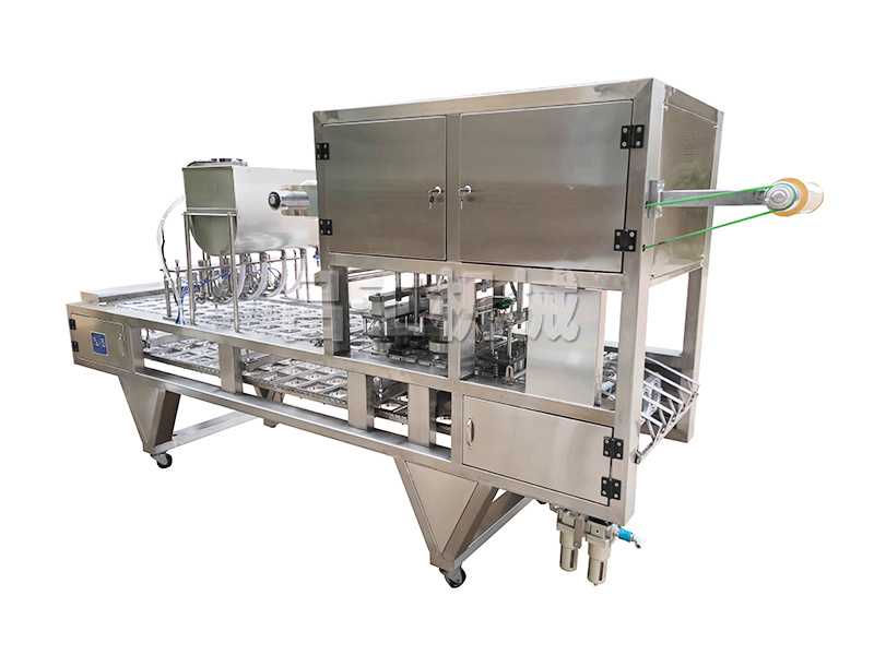 本機(jī)采用合理的機(jī)械傳動,功能齊全,灌裝、封口、切邊、制品推出,廢料收卷,印碼等自動化工作,可節(jié)約人力,降低成本。本機(jī)有二次熱封裝置,料杯/碗/盒與封膜經(jīng)過前后二次熱封,封口牢固可靠。
