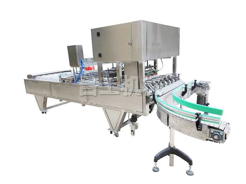 4、灌裝系統(tǒng):儲料缸為不銹鋼304材質(zhì),氣缸行程工作活塞式定量灌裝、非接觸式灌裝、灌裝量可自由調(diào)節(jié)、定量準(zhǔn)確,帶有液位控制裝置。
