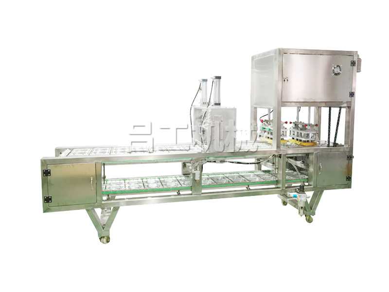 本機(jī)采用合理的機(jī)械傳動(dòng),功能齊全,灌裝、封口、切邊、制品推出,廢料收卷,印碼等自動(dòng)化工作,可節(jié)約人力,降低成本。本機(jī)有二次熱封裝置,料杯/碗/盒與封膜經(jīng)過前后二次熱封,封口牢固可靠。